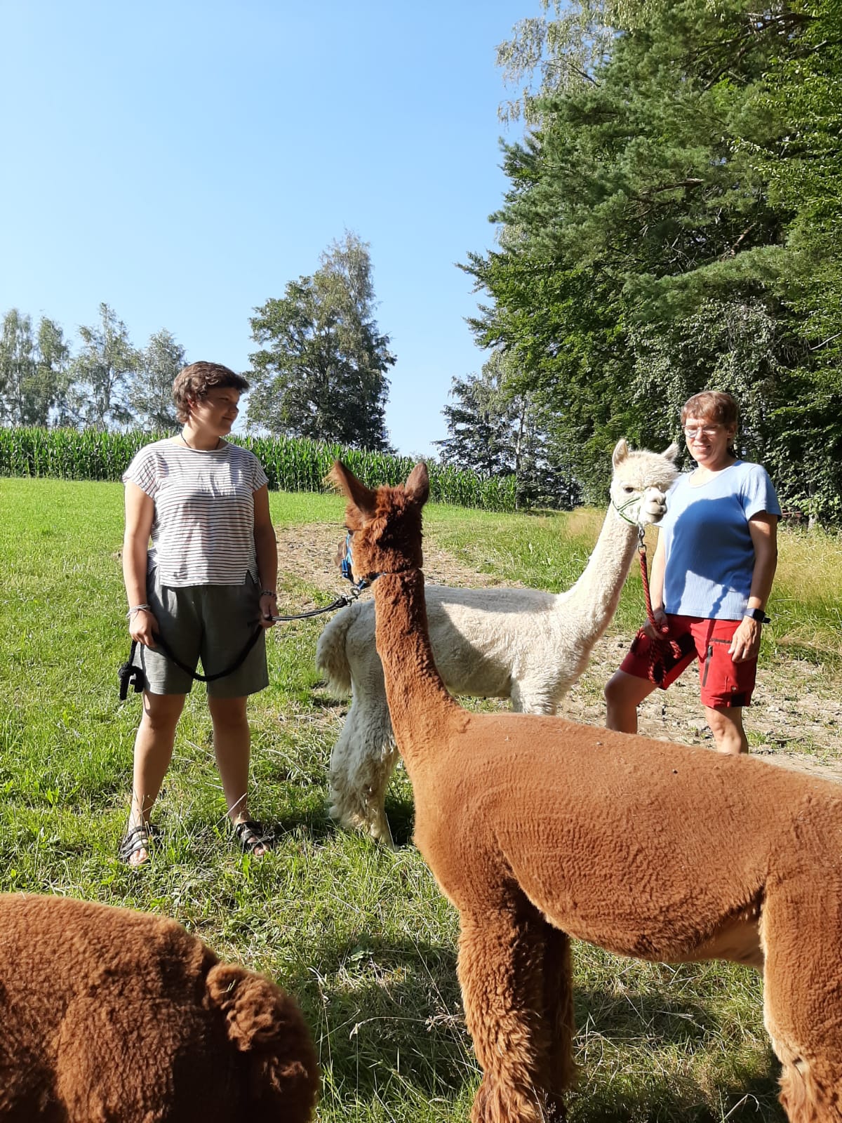 Wandern Sie mit unseren Alpakas und erleben Sie, wie die Ruhe der Tiere auf Sie selbst übergehen kann!